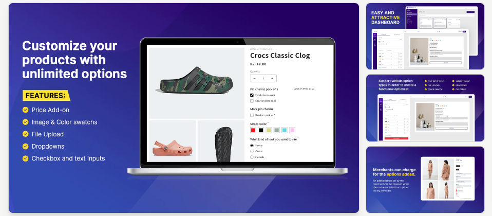 Shopify allows 100 versions per product. Genie Options allows you to generate endless product variants. With Genie Options, you can easily make customized options for your products. You can make them required or not, and set custom prices on created options. Allow your customers to create their own personalized items using a variety of option choices. Set up the product options with different prices, so that customers can choose the best option for their needs which will boost sales.<br>